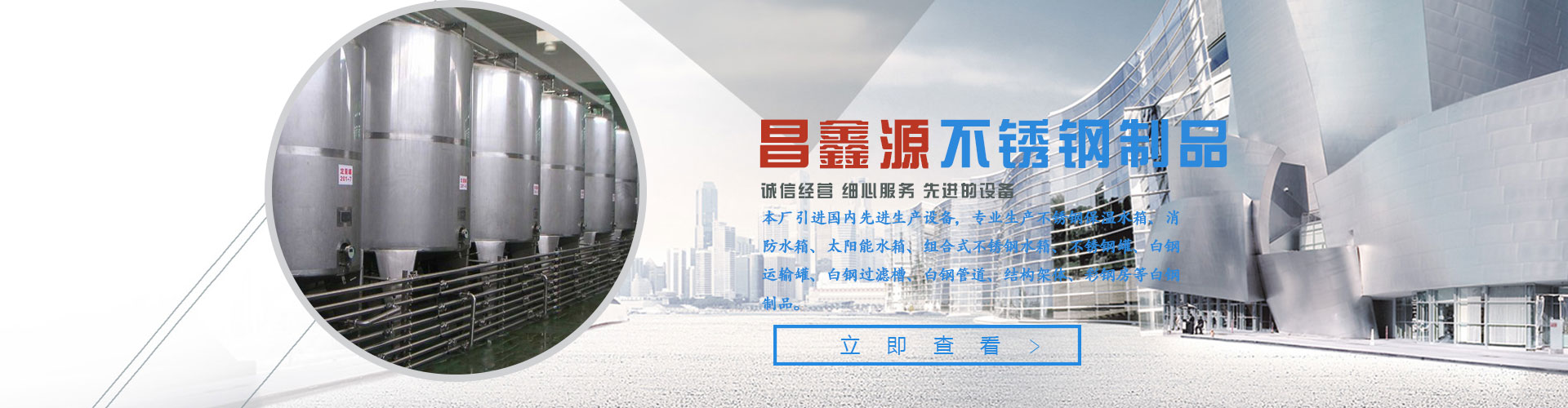 沈陽(yáng)市昌鑫源不銹鋼制品有限公司成立于1999年,是集不銹鋼水箱開(kāi)發(fā)設(shè)計(jì)、生產(chǎn)、銷(xiāo)售、售后服務(wù)為一體的公司。本廠(chǎng)引進(jìn)國(guó)內(nèi)先進(jìn)生產(chǎn)設(shè)備,生產(chǎn)不銹鋼保溫水箱、消防水箱、太陽(yáng)能水箱、組合式不銹鋼水箱、不銹鋼罐、白鋼運(yùn)輸罐、白鋼過(guò)濾槽、白鋼管道、彩鋼房等白鋼制品。